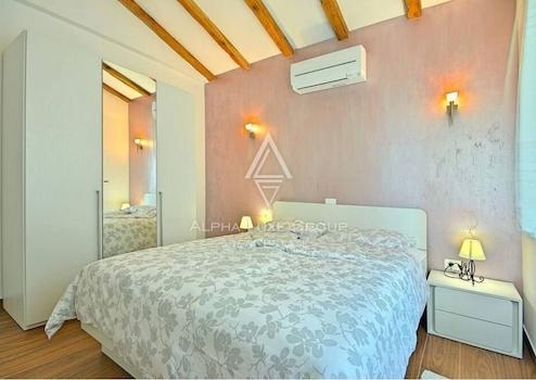 Ein Doppelzimmer mit Balkon und eigenem Bad befindet sich im zweiten Stock. Außerdem ein Wohnbereich mit voll ausgestatteter Küche und ein Schlafzimmer mit Bad im Untergeschoss.