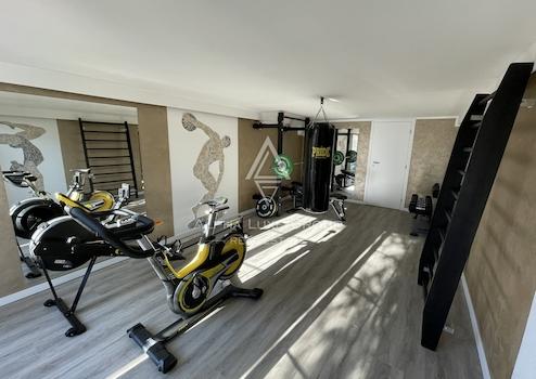 Die Terrasse und das Wohnzimmer sind mit dem Swimmingpool mit eingebautem Whirlpool verbunden. Dieses moderne, atemberaubende Haus ist eine ideale Gelegenheit für eine touristische Vermietung.