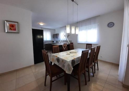 - Im Erdgeschoss, im geräumigen Wohnzimmer, befindet sich eine gut ausgestattete Küche und ein Essbereich. Auf der Erdung gibt es ein Einzelzimmer mit einem Bad, einem privaten Bad (Toilette) für Gäste und einer großen überdachten Terrasse mit Blick auf Meer, Garten und Pool.