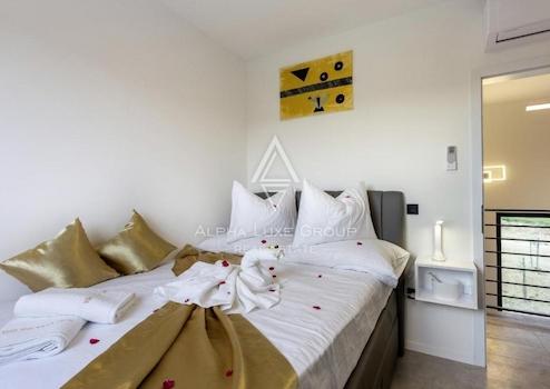 Das Hotel liegt in einem ruhigen Dorf in der Gemeinde Kršan. Das Haus von 130 m2 befindet sich auf einem großzügigen eingezäunten Grundstück von 2800 m2, das absolute Privatsphäre bietet.