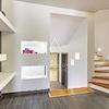 Eine Eingangshalle, zwei Lagerräume, die jetzt als Lager genutzt werden, ein riesiges Badezimmer und ein riesiger Wohnbereich, der mit der Küche und dem Essbereich im Erdgeschoss verbunden ist. Durch die Glasfelsen ist alles außergewöhnlich brillant.