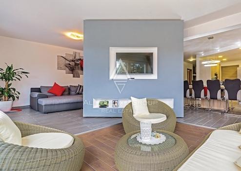 Die Villa liegt in einer abgelegenen Gegend mit einer Wohnfläche von 347 m2 und einer Gartenfläche von 948 m2. Da es eingezäunt ist und absolute Privatsphäre bietet. Ein Swimmingpool, eine Sonnenterrasse, eine Außenküche mit Grill und ein separater Außenbereich im Hof dienen als Unterhaltungsbereich mit Tischtennis, Billard, Darts und Tischfußball.