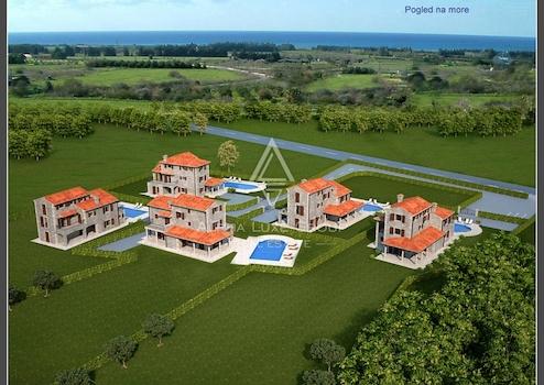 Das vielseitige Land eignet sich für den Bau von ein, zwei oder drei Luxusvillen oder bis zu zehn kleineren Villen, jede mit eigenem Pool. Einige Parzellen könnten zusätzlich landwirtschaftlich genutzt werden, was die Gestaltungsmöglichkeiten erweitert. Der direkte Zugang zur Hauptstraße, die Pula, Vodnjan, Svetvinčenat und Pazin verbindet, macht dieses Grundstück hervorragend erreichbar und bereit für zukünftige Entwicklungen.