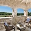 Das Erdgeschoss bietet ein prächtiges Wohnzimmer mit Kamin, einen Essbereich für 10 Gäste, eine moderne rustikale Küche und zwei Schlafzimmer mit en-suite Badezimmern; eines mit einem Doppelbett und das andere mit zwei Einzelbetten. Im ersten Stock befinden sich drei Doppelzimmer, jedes mit eigenem Bad und Doppelbetten. Zwei dieser Schlafzimmer bieten Zugang zu Terrassen mit herrlichem Blick auf das üppige Grün, das Meer und das ferne Rovinj.