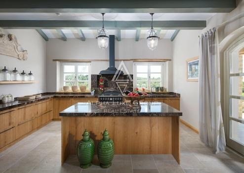 Das Innere der Villa, reichhaltig eingerichtet im rustikalen Schlossstil, bietet unvergleichlichen Komfort. Jede Einheit verfügt über einen eigenen Garten und einen Pool mit Hydromassage-Ecke, was Exklusivität und Entspannung garantiert. Der Panoramablick auf das Meer von den Balkonen im Obergeschoss trägt zum Charme dieser majestätischen Residenz bei.