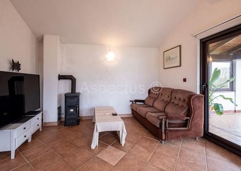 Das zweite Haus mit 73m² Wohnfläche besteht aus einem Eingangsbereich, einem Wohnzimmer mit Zugang zu einer grossen Terrasse, einer Küche und einem Essbereich, einem Schlafzimmer, einem zusätzlichen Raum, der derzeit als Abstellraum dient, und einem Badezimmer.