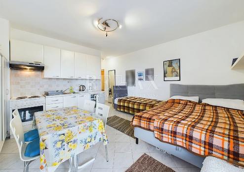 Das Studio besteht aus einem offenen Wohnbereich mit Schlafbereich, Küche und Essbereich, einem Badezimmer sowie einem Balkon mit Meerblick. Es befindet sich in einem Gebäude, das im Jahr 2008 erbaut wurde. Ein großer Vorteil dieser Immobilie ist der eigene Parkplatz, was in touristischen Orten wie Dramalj besonders wichtig ist. Die Fenster und Balkontüren lassen viel natürliches Licht herein.