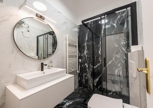 Luxuriöses Badezimmer & Teeküche: Stilvolle Details und eine massgefertigte Teeküche.