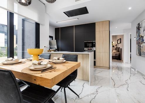Die Wohneinheiten bieten unter anderem PVC-Fenster mit Doppelverglasung und elektrischen Rollläden, Sicherheitstüren, Klimaanlage, moderne Einbauküchen mit Elektrogeräten, Einbauschränke in den Schlafzimmern, Möblierung, Badezimmer mit Fußbodenheizung, Porzellanelementen, Möbeln, Duschwand und Spiegeln. Zu jeder Wohneinheit gehören außerdem ein Kfz-Stellplatz innerhalb der Anlage oder in der Tiefgarage sowie ein Abstellraum im Untergeschoss.