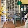 Die Küche mit Essbereich wird durch eine große gerundete Glaswand vom Wohnbereich getrennt, um die gesamte Helligkeit von außen zu erhalten.