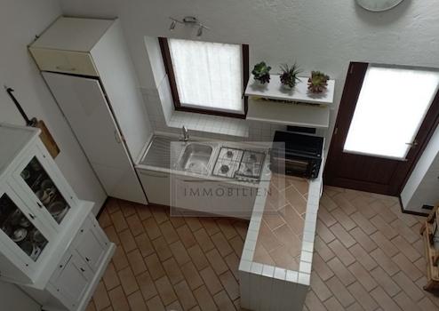 Im ersten Stock: Wohnküche mit Essbereich, ein Bad, ein Schlafzimmer.