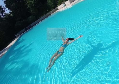 Die kleine Wohnanlage verfügt über einen Gemeinschaftspool im Garten.