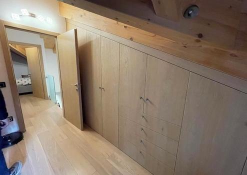 - ein zweites Doppelzimmer mit maßgefertigtem Kleiderschrank mit Balkon und