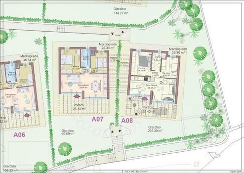 Jede Villa hat einen Garten und eine exklusive Veranda mit traumhaften Blick auf den See. Zu jedem Haus gehört eine Tiefgarage. Alle Villen sind Energieklasse A und mit Solarkollektoren, Heizung, und Klimaanlage ausgestattet.