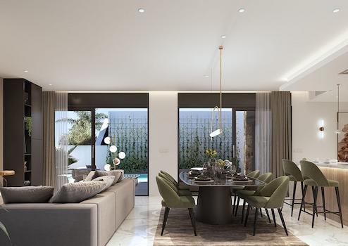 Die Villen bieten unter anderem PVC-Fenster mit Doppelverglasung und elektrischen Rollläden, Sicherheitstüren, Klimaanlage, moderne Einbauküchen mit Elektrogeräten, Einbauschränke in den Schlafzimmern, Videogegensprechanlage, Badezimmer mit Fußbodenheizung, Porzellanelementen, Möbeln, Duschwand und Spiegeln. Zu jeder Wohneinheit gehören außerdem ein Kfz-Stellplatz und ein Privatpool auf dem eigenen Grundstück.
