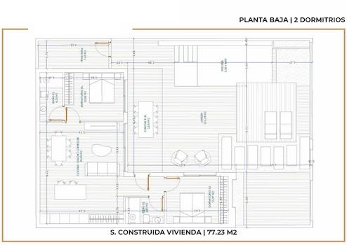Diese modernen eingeschossigen Villen verfügen über eine konstruierte Fläche von ca. 77 m² (ohne Terrassen) mit