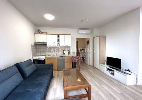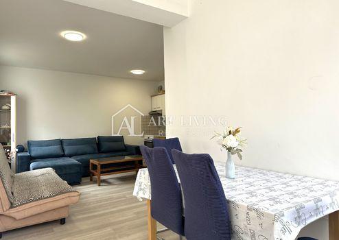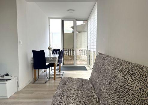 Die Wohnung befindet sich im Erdgeschoss, hat eine Wohnfläche von 46 m2 und besteht aus: einer Eingangshalle, einem Wohnzimmer mit offener Küche und Esszimmer, einem Schlafzimmer, einem Badezimmer und einer großzügigen überdachten Terrasse ( Carport) mit eigenem Garten mit einer Gesamtfläche von 18 m2. Die Wohnung verfügt außerdem über eine Lagerfläche von 4,81 m2