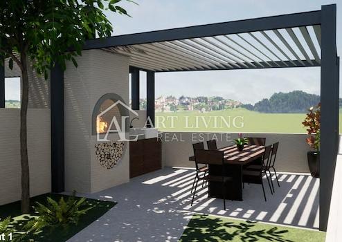 In einer charmanten und ruhigen Siedlung, nur 5 km vom bekannten Poreč und nur 2,5 km vom Meer und den Stränden entfernt, steht dieses moderne Reihenhaus zum Verkauf, dessen Bau im Jahr 2024 begann.