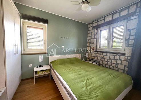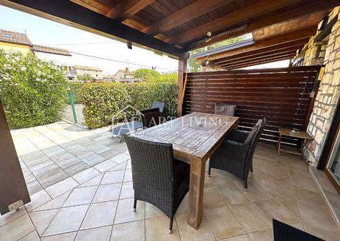 Zum Verkauf steht eine Zweizimmerwohnung mit großem Garten im Erdgeschoss eines kleineren Wohngebäudes, gelegen in einem ruhigen und schönen Dorf, 5 km vom Meer und den Stränden und 6 km vom Zentrum von Poreč entfernt.