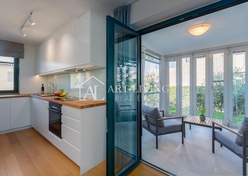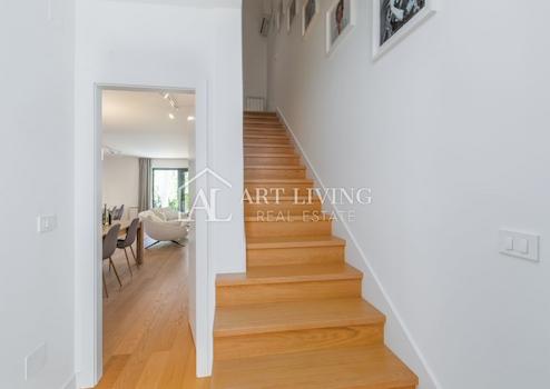 Zum Verkauf steht ein einzigartiges, luxuriös eingerichtetes Reihenhaus mit eigenem Privatpool, in ausgezeichneter Lage, in der Nähe aller wichtigen Einrichtungen (Geschäfte, Restaurants, Yachthafen, Parks, Strände, Sportanlagen), nur 600 m vom Meer und 800 m entfernt vom Zentrum von Umag.
