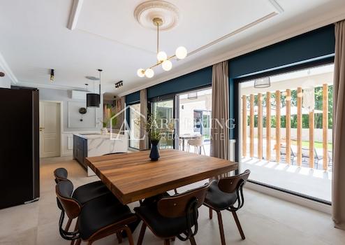 VILLA 1 ist als einstöckiges Haus mit einer Fläche von 147 m2, modernem L-Plan-Design, einer großzügigen Terrasse mit Sommerküche und Platz zum Ausruhen und Entspannen sowie einem großzügigen Außenpool von 27 m2 konzipiert