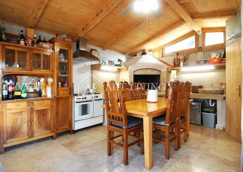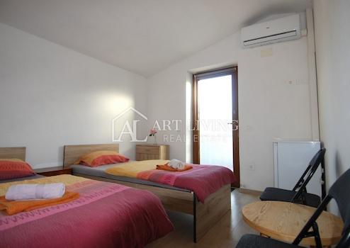 Das Haus mit einer Gesamtfläche von 225 m2 erstreckt sich über 2 Etagen; Erdgeschoss und 1. Stock und besteht aus zwei separaten Apartments, zwei Studio-Apartments und einer echten istrischen Taverne von 30 m2.