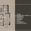 Die Wohnung mit einer Gesamtfläche von 79,80 m2 besteht aus einer Eingangshalle, zwei Schlafzimmern, einem Abstellraum, einem Badezimmer und einem Wohnzimmer mit offener Küche und Esszimmer. Das Wohnzimmer führt zu einer überdachten Terrasse von 18,50 m2 und einem 60 m2 großen Garten.