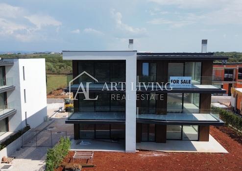 Zum Verkauf steht eine moderne Wohnung im ersten Stock eines neuen Gebäudes in einem kleineren Wohngebäude, nur 800 m vom Meer und gepflegten Stränden, 4 km vom Golfplatz und nur 5 km vom Zentrum von Umag entfernt.