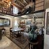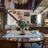 Eine elegante Treppe im Wohnzimmer, die den gesamten Raum umgibt, führt zur Galerie, wo sich ein Hauptschlafzimmer mit eigenem Bad und eine Bibliothek befinden.