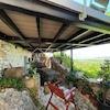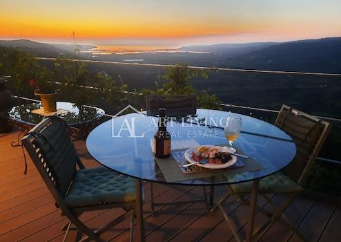 Vom Wohnzimmer aus hat man direkten Zugang zur 30 m2 großen Terrasse, die einen freien Panoramablick auf das Meer und die Natur und die malerische Landschaft bietet.