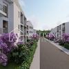 Die Wohnung im Erdgeschoss mit Garten mit einer Gesamtfläche von 74,75 m2 besteht aus einem Flur, einem Wohnzimmer mit Esszimmer und offener Küche, 2 Schlafzimmern mit eigenen Badezimmern, einem Abstellraum und einer überdachten Terrasse von 8,59 m2.