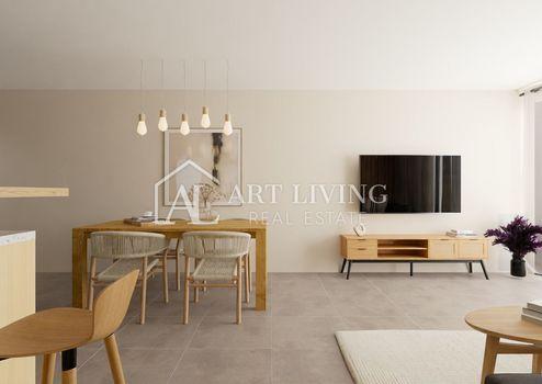 Die Wohnung hat eine Fläche von 68,84 m2 und besteht aus einem Flur, einem Wohnzimmer mit offener Küche und einem Esszimmer mit Zugang zu einer überdachten Terrasse von 5 m2. Die Wohnung verfügt außerdem über 2 Schlafzimmer, ein Badezimmer, eine Speisekammer und einen Abstellraum.