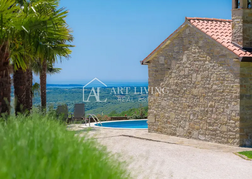 Buje-Umgebung, eine schöne Villa im istrischen Stil mit freiem Blick und einem Swimmingpool
