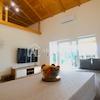 Vom Wohnzimmer aus haben Sie direkten Zugang zur überdachten Außenterrasse von 17 m2 und zum Garten mit Blick auf Natur und Grün.