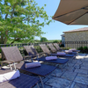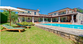 Vom Wohnzimmer im Erdgeschoss, Küche, Esszimmer und Schlafzimmer im Erdgeschoss hat man direkten Zugang zum 65 m² großen Pool mit Sonnendeck, Essbereich und grüner Wiese.
