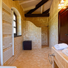 Das Erdgeschoss verfügt über ein geräumiges Wohnzimmer, Küche im rustikalen Stil mit Essbereich und direktem Zugang zur Außenküche, Terrasse und Pool. Außerdem gibt es zwei Schlafzimmer mit eigenem Bad, eines davon mit finnischer Sauna.