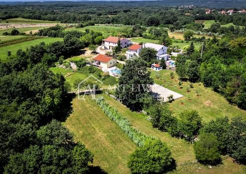Im Zentrum des schönen Istriens, nicht weit von Žminj, in einem kleinen malerischen Ort mit schöner Landschaft, steht ein Familiengutkomplex zum Verkauf. Dieses einzigartige Anwesen umfasst 10.000 m2 und besteht aus zwei Einfamilienhäusern mit privaten Pools und einem Geschäfts- und Wohngebäude. Das Anwesen befindet sich in ruhiger Lage, umgeben von Natur und Grün und garantiert absolute Ruhe und Privatsphäre.
