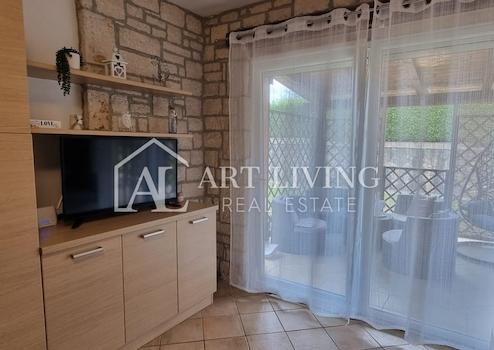 Zum Verkauf steht eine Zwei-Zimmer-Wohnung im Erdgeschoss eines kleinen Wohnhauses in einem ruhigen und schönen Dorf, 5 km vom Meer und den Stränden sowie 6 km vom Zentrum von Poreč entfernt.