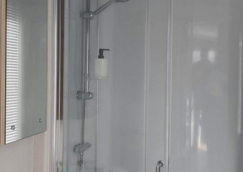 Das Badezimmer ist mit einem Waschbecken und einer großzügigen Duschkabine ausgestattet, die ausreichend Platz für eine bequeme Dusche bietet. Das Waschbecken ist praktisch für die tägliche Körperpflege. Das Design des Badezimmers sorgt für eine ideale Kombination aus Komfort und Funktionalität, damit Sie sich stets wohlfühlen.