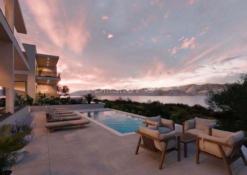 Verkauf, Pag, Luxus-Neubau, Drei-Zimmer-Wohnung, Erste Reihe zum Meer