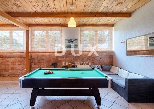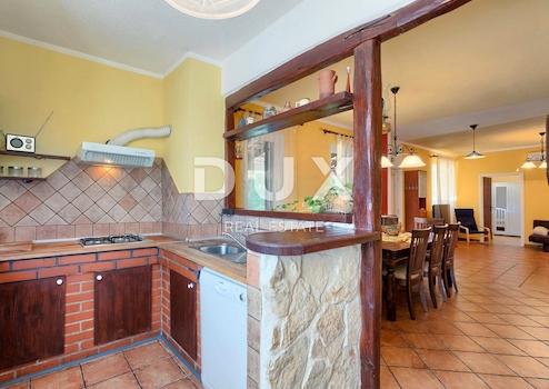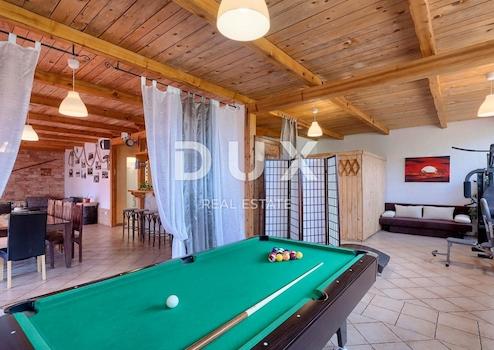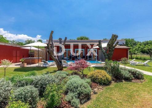Die mittelalterliche Stadt Buje liegt im nordwestlichen Teil der istrischen Halbinsel auf einem Hügel mit wunderschöner Aussicht auf das Meer, die umliegenden Hügel, Weinberge und Olivenhaine, für die diese Gegend berühmt ist. Die Nähe zum Meer, der Einfluss des mediterranen und milden kontinentalen Klimas, die Tradition in landwirtschaftlicher Produktion, Jagd und Tourismus, die hügelige Landschaft sowie die erhaltene und unberührte Natur machen das Gebiet der Stadt Buje zu einem der attraktivsten Gebiete der istrischen Halbinsel. Umgeben von viel Grün in einer ruhigen Nachbarschaft in der Nähe der Stadt Buje steht ein geräumiges Haus mit Swimmingpool zum Verkauf. Die Mikrolage bietet das authentische Erlebnis einer kleinen istrischen Stadt, Intimität, Erleichterung von aller Hektik und eine Pause vom Lärm und ist gleichzeitig nah genug an den dynamischen Städten Istriens mit zahlreichen Annehmlichkeiten. Das Haus mit zeitlosem Charme fügt sich in Form und Farbigkeit in die Siedlung und Landschaft ein und ist als einheitliche, eingeschossige Wohneinheit konzipiert. Es besteht aus einem geräumigen Gemeinschaftsbereich mit Küche und Esszimmer, einem Billardtisch und einer Sauna, einem offenen Raum, der Küche, Esszimmer und Wohnzimmer vereint, fünf Schlafzimmern und vier Badezimmern. Der weitläufige Garten ist voller Grün und mediterraner Pflanzen und verfügt über einen Swimmingpool mit Liegewiese und einen Geräteschuppen. Die außergewöhnliche Lage, Struktur und der Komfort machen dieses Anwesen zu einer idealen Gelegenheit für ein ruhiges Familienleben sowie zu einer Investition für die touristische Vermietung.