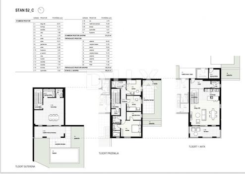 RIJEKA, KOSTRENA – exklusive Maisonette-Wohnung 212,23 m², Neubau mit wunderschönem Meerblick und Swimmingpool + Garten 153,70 m² – S2-C