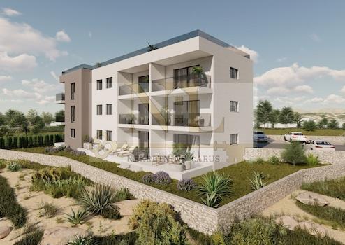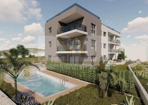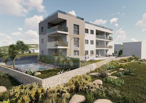 Die Wohnung befindet sich in einem Gebäude mit 9 Wohneinheiten, 500 Meter vom Meer und Strand entfernt, in Panoramalage in Okrug Gornji.