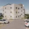 Wohnung S3, Erdgeschoss, besteht aus Küche mit Esszimmer und Wohnzimmer, Flur, zwei Schlafzimmern, Badezimmer, Flur, Loggia und Terrasse.