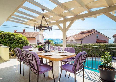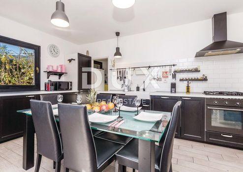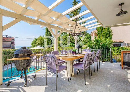 Es befindet sich in einer friedlichen und ruhigen Lage und dennoch in der Nähe aller notwendigen Annehmlichkeiten für ein qualitativ hochwertiges Leben. Das Haus ist nach Süden ausgerichtet und bietet Meerblick. Es besteht aus einem Erdgeschoss und zwei Stockwerken, die durch eine Innen- und eine Außentreppe verbunden sind. Das Erdgeschoss besteht aus einer Garage und einem zusätzlichen Heizraumtank. Beide Etagen sind im Wesentlichen Maisonette-Wohnungen bestehend aus einem Wohnzimmer und einer Küche mit Zugang zur Terrasse, einem Abstellraum und einem Badezimmer im unteren Teil und 3 Schlafzimmern im oberen Teil. Die Villa ist solide gebaut und luxuriös ausgestattet, alle verbauten Materialien, Boden- und Wandbeläge entsprechen hohen Standards (10 cm dicke Fassadendämmung, Heizung – Wärmepumpen, hochwertige Aluminium-Tischlerei). Es wird komplett möbliert mit erstklassigen Möbeln und Geräten verkauft. Der Hof ist landschaftlich gestaltet und wird ständig gepflegt. Zum Haus gehören ein Swimmingpool und ein Gartenhaus mit Sommerküche. Sauberes und ordentliches Anwesen. Sicherlich eine wunderschöne Immobilie für luxuriöses Familienleben, aber auch als Investition in Form von Elitetourismus geeignet. Opatija, eine wunderschöne Küstenstadt an der Adria, ist ein bekanntes Reiseziel für Touristen aus aller Welt. Die Stadt ist von wunderschöner Natur umgeben und liegt am Fuße des Berges Učka. Immobilien in Opatija bieten einen unbezahlbaren Blick auf das Meer und die umliegenden Inseln Krk und Cres. Opatija ist von charmanten Kleinstädten mit alten Häusern umgeben, die in geschichtsträchtigen engen Gassen eingebettet sind. Die Straßen der Stadt Opatija bestehen aus Immobilien, die durch ihre spezifische Architektur und Villen aus der Habsburgerzeit auffallen. Eine große Auswahl an Stränden, kristallklares Meer und vielfältige touristische Dienstleistungen sind Schlüsselfaktoren, die Opatija zu einem perfekten Reiseziel machen, das von den Nachbarländern als hervorragende Investitionswahl anerkannt wird. Die Immobilienpreise in dieser Gegend steigen, die Mietauslastung ist ausgezeichnet, was zu einer Kapitalrendite von 5 bis 10 % geführt und ausländische Investoren angezogen hat.