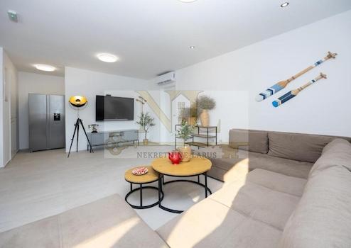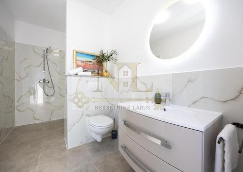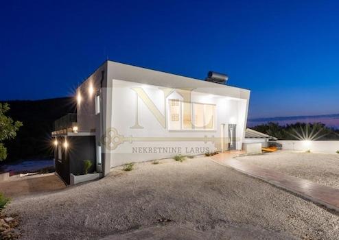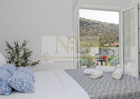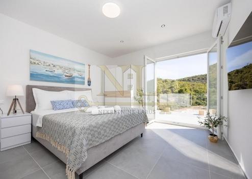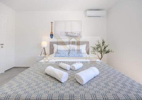 Diese kleine moderne Villa wurde 2024 erbaut und liegt an einem sanften Hang in Südlage, nur wenige Schritte vom Meer und Strand entfernt.