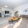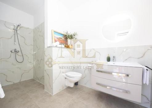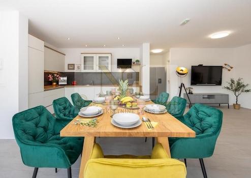 Die Villa besteht aus zwei Etagen. Im Erdgeschoss gibt es eine geräumige offene Küche mit Esszimmer und Wohnzimmer, eine separate Toilette, ein Schlafzimmer mit eigenem Bad und eine Innentreppe, die in den ersten Stock führt. Im ersten Stock befinden sich zwei Schlafzimmer mit zwei eigenen Bädern, beide Zimmer haben Zugang zu einem geräumigen Balkon.