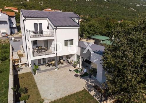 Wir verkaufen eine attraktive Villa in einem ruhigen und malerischen Ort oberhalb von Crikvenica, umgeben von unberührter Natur, Wäldern und einem See und nur wenige Autominuten von den berühmten Stränden der Riviera von Crikvenica entfernt. Dieses Objekt bietet gehobenen Komfort, Wellnesseinrichtungen und hervorragende Möglichkeiten zur touristischen Vermietung mit ganzjähriger Belegung. Die Villa erstreckt sich über mehrere Etagen und besteht aus vier geräumigen Schlafzimmern, jeweils mit eigenem Bad, einer modern ausgestatteten Küche mit Essbereich und einem geräumigen Wohnzimmer. Zusätzlichen Mehrwert bieten zwei Balkone, eine Terrasse und ein Spielzimmer mit Fitnessraum, das direkten Zugang zum Garten mit Terrasse und Liegewiese bietet. Besonders hervorzuheben ist der beheizte Innenpool mit einer Fläche von 32 m² und einer Tiefe von 135 cm im Untergeschoss der Villa, neben dem sich eine Sauna, eine Dusche und ein Luftentfeuchter befinden. Rund um den Pool wurde eine Fußbodenheizung mit Wärmepumpe installiert, während auf dem Dach Anschlüsse für Solarmodule vorbereitet wurden, um eine hohe Energieeffizienz der Anlage zu gewährleisten. Die gesamte Villa ist mit einer Fußbodenheizung und Klimaanlage ausgestattet, die Beheizung erfolgt über eine Wärmepumpe. Dieses Luxusanwesen wurde ausschließlich zur touristischen Vermietung genutzt und hat sich dank der angebotenen Annehmlichkeiten und der attraktiven Lage in der Nähe des Sees als äußerst rentable Investition erwiesen, ideal für Naturliebhaber, Radfahrer, Angler usw. Dies ist eine seltene Gelegenheit, eine Immobilie zu erwerben, die eine schnelle Kapitalrendite und höchsten Komfort garantiert! Makler-Empfehlung!