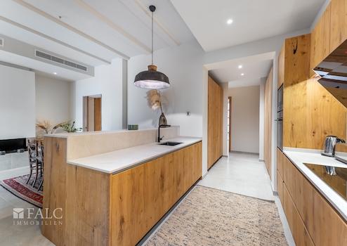 Die moderne Einbauküche ist mit allen notwendigen Geräten ausgestattet und bietet genügend Platz für gemütliche Kochabende. Besonders hervorzuheben ist der private Pool, der auf der Dachterrasse der Wohnung liegt und einen atemberaubenden Blick über die Stadt bietet. Hier können Sie sich an heißen Sommertagen erfrischen und die Sonne genießen.