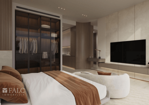 Dieses Studio vereint modernes Wohnen mit Resort-Feeling. Es bietet nicht nur einen offenen und lichtdurchfluteten Grundriss, sondern auch ein absolutes Highlight: einen privaten Pool auf dem eigenen Balkon – perfekt für entspannte Abende oder Wochenenden zu Hause.